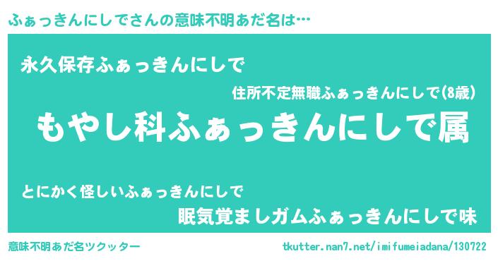 | ヘコむあだ名 | 『ふぁっきんにしで(小並感)』『ふぁっぺ』 |
