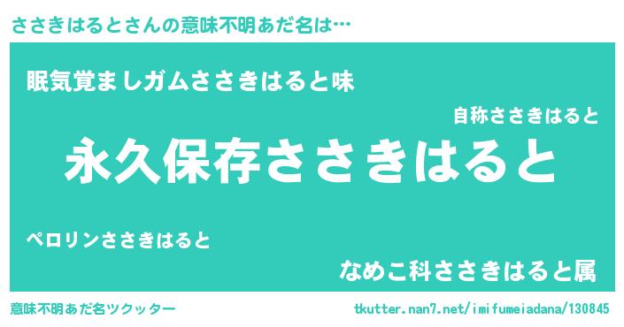 | 男性向けラノベタイトル風あだ名 | 『ささきはるとという概念が存在しない退屈な世界 』 |