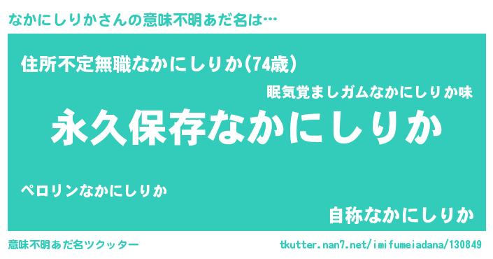 | 男性向けラノベタイトル風あだ名 | 『なかにしりかに滅ぼされるだけの簡単なお仕事です』 |