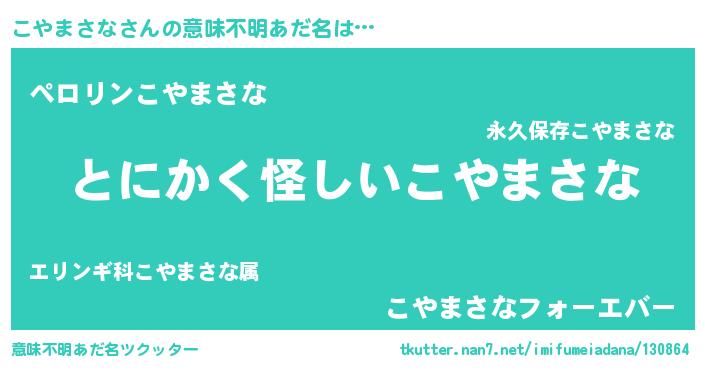 | 女子向けラノベタイトル風あだ名 | 『こやまさなの卵を拾いまして』 |
