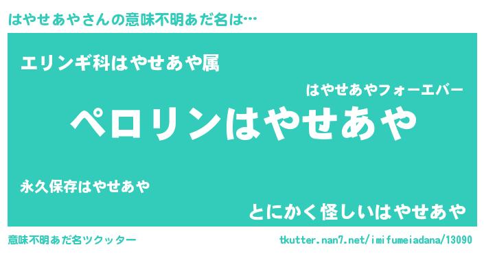 | ヒーロー風カッコイイあだ名 | 『スーパーハヤセアヤ』『黄金騎士ハヤ』 |