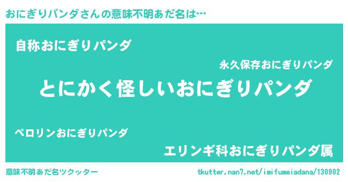 | 胡散臭い通販商品みたいなあだ名 | 『信頼と実績のペンダント…その名も「おにぎりパンダ」』 |