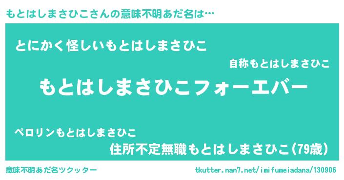 | 男性向けラノベタイトル風あだ名 | 『やはりもとはしまさひこの青春ラブコメはまちがっている 』 |
