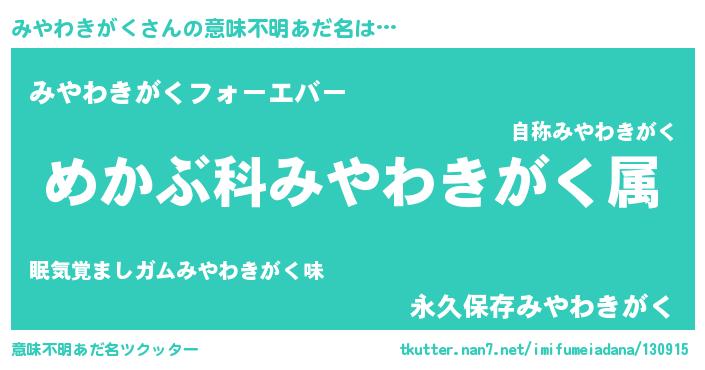 | 欧米人風あだ名 | 『みやわきがく・ステッグマイヤー』 |
