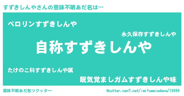 | 男性向けラノベタイトル風あだ名 | 『Re:すずきしんやから始める異世界生活』 |