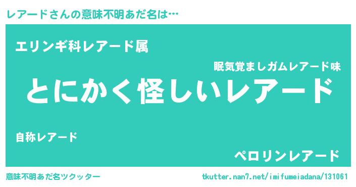 | ヒーロー風カッコイイあだ名 | 『幻影騎士レア』『スーパーレアード』 |