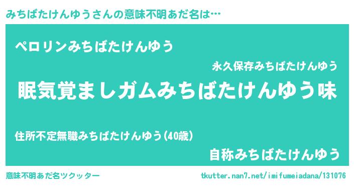 | ヘコむあだ名 | 『みちふぇ~』『みちばたけんゆう(苦笑)』 |