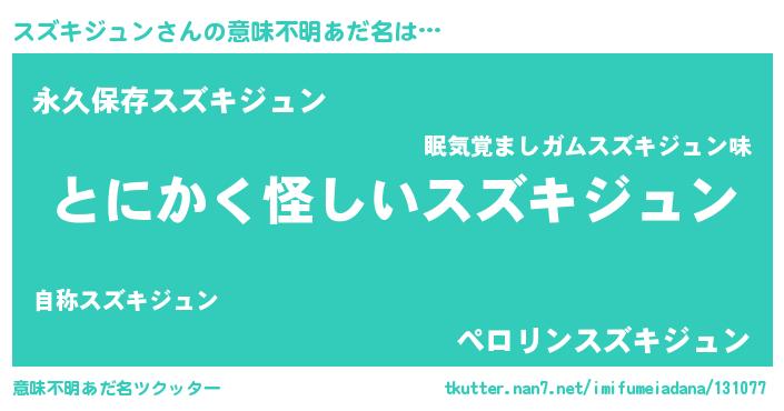 | 胡散臭い通販商品みたいなあだ名 | 『全米が絶賛したサプリメント…その名も「スズキジュン」』 |