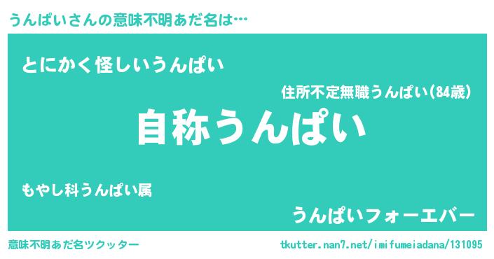 | ヒーロー風カッコイイあだ名 | 『最強戦士ウンパイ』『暗黒騎士ウン』 |