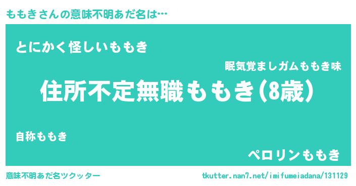 | 男性向けラノベタイトル風あだ名 | 『魔弾の王とももき』『ももきの憂鬱』 |