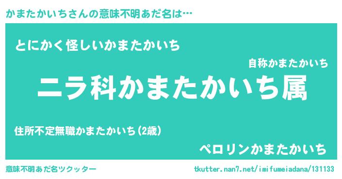 | 男性向けラノベタイトル風あだ名 | 『かまたかいちに滅ぼされるだけの簡単なお仕事です』 |
