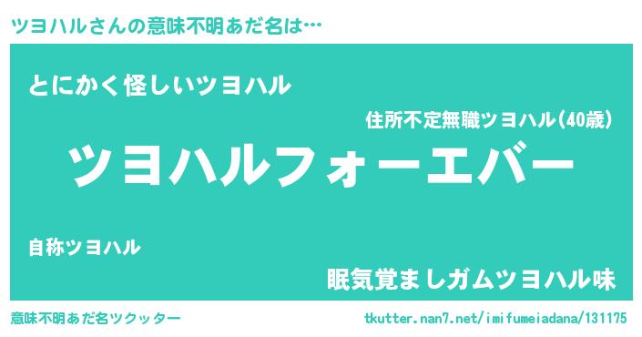 | ポケモン風あだ名 | 『ツヨハダネ』『ヒツヨハル』 |