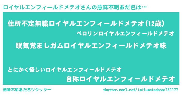| ヒーロー風カッコイイあだ名 | 『慈愛の使者ロイヤルエンフィールドメテオ』 |