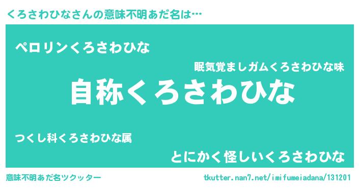 | ヒーロー風カッコイイあだ名 | 『最強戦士クロサワヒナ』『暗黒騎士クロ』 |