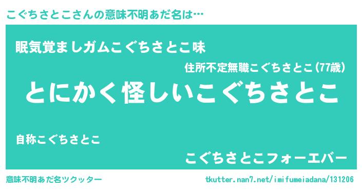 | 男性向けラノベタイトル風あだ名 | 『こぐちさとこの嫁は女の子じゃないと思った?』 |