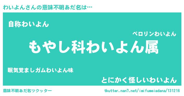 | ヘコむあだ名 | 『わいお』『わいっふぃ~』 |