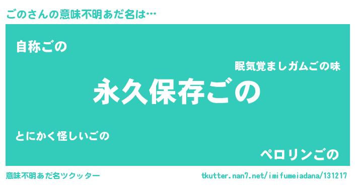 | 男性向けラノベタイトル風あだ名 | 『ごのという概念が存在しない退屈な世界 』 |