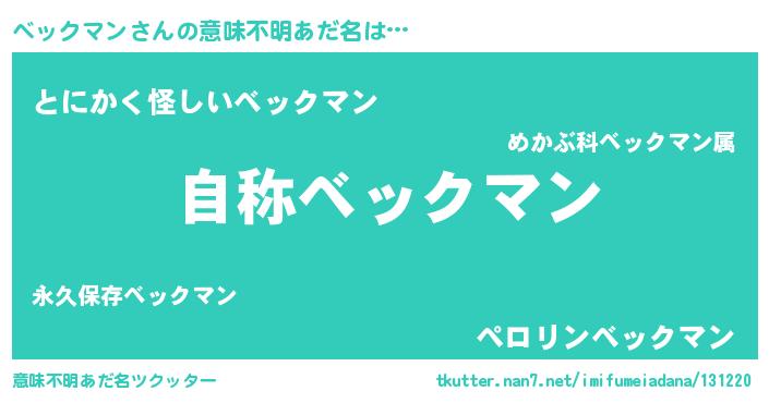 | 女子向けラノベタイトル風あだ名 | 『ベックマンなんてお断りですっ。』 |