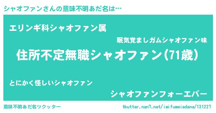 | ヘコむあだ名 | 『なまこ酢』『シャお』『シャにー』 |