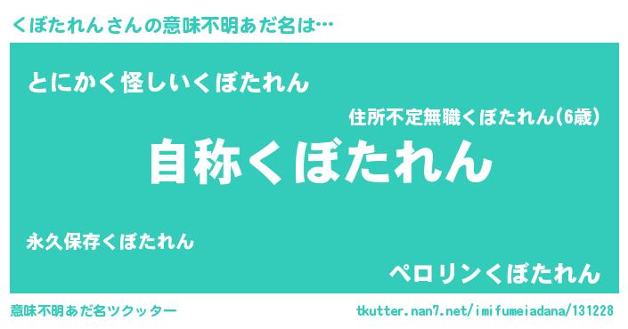 | 男性向けラノベタイトル風あだ名 | 『Re:くぼたれんから始める異世界生活』 |