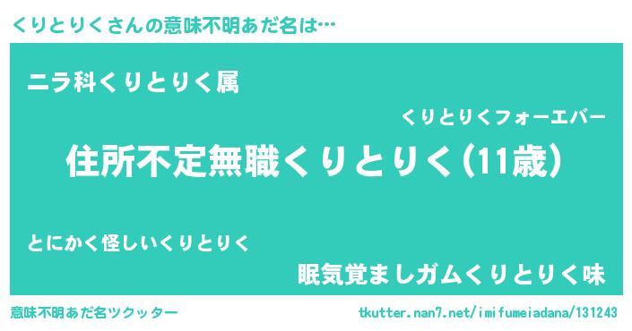 | 男性向けラノベタイトル風あだ名 | 『この素晴らしい世界にくりとりくを!』 |
