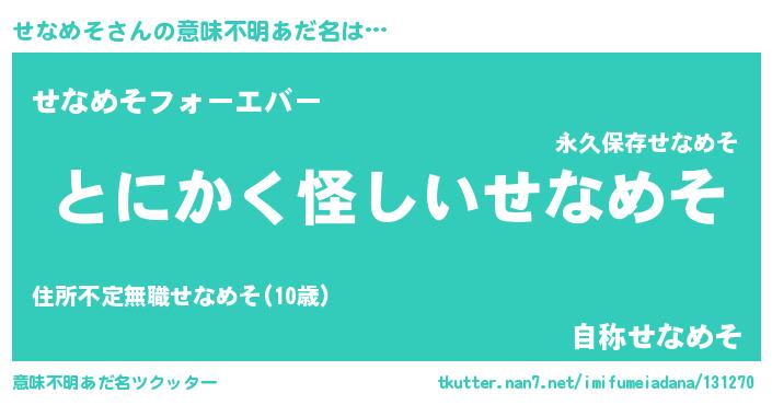 | ヘコむあだ名 | 『せなっ子』『つくし』『せなふぇ~』 |