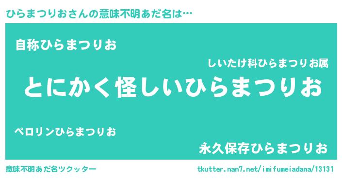 | 肩書あだ名 | 『ひらまつりおディレクター』 |