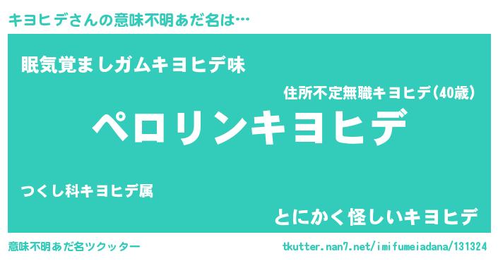 | 男性向けラノベタイトル風あだ名 | 『キヨヒデの憂鬱』『緋弾のキヨヒデ』 |