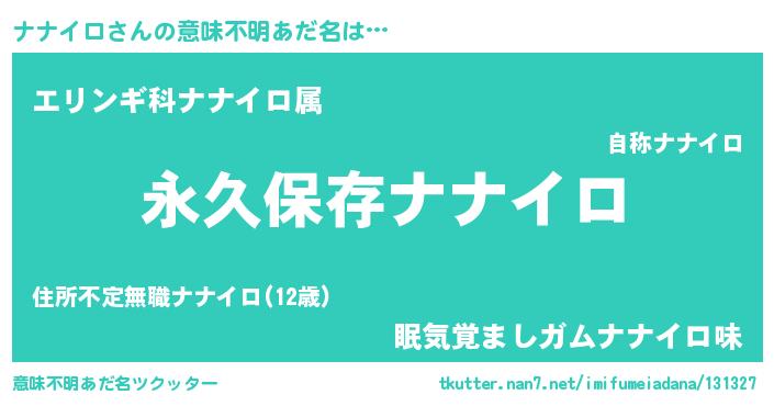 | 男性向けラノベタイトル風あだ名 | 『ナナイロという概念が存在しない退屈な世界 』 |
