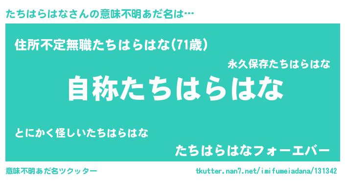 | ヒーロー風カッコイイあだ名 | 『最強戦士タチハラハナ』『仮面タチダー』 |