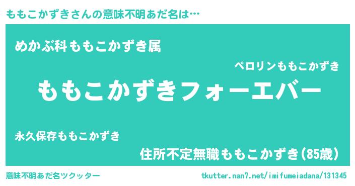 | ファンタジー風あだ名 | 『エターナルモモコカズキー』 |