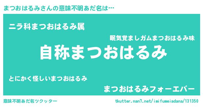 | 男性向けラノベタイトル風あだ名 | 『Re:まつおはるみから始める異世界生活』 |