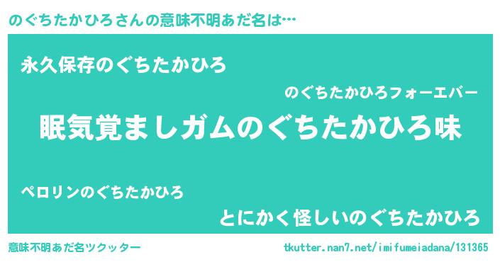 | ヘコむあだ名 | 『のぐちたかひろ(苦笑)』『のぐ太郎』 |