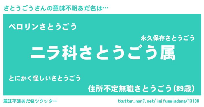 | 胡散臭い通販商品みたいなあだ名 | 『億万長者になれる霊験あらたかなお札…その名も「さとうごう」』 |