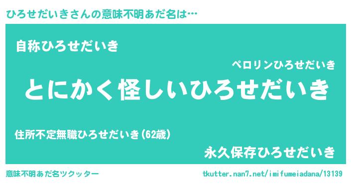 | ポケモン風あだ名 | 『ヒヒロセダイキ』『ヒロセウス』 |