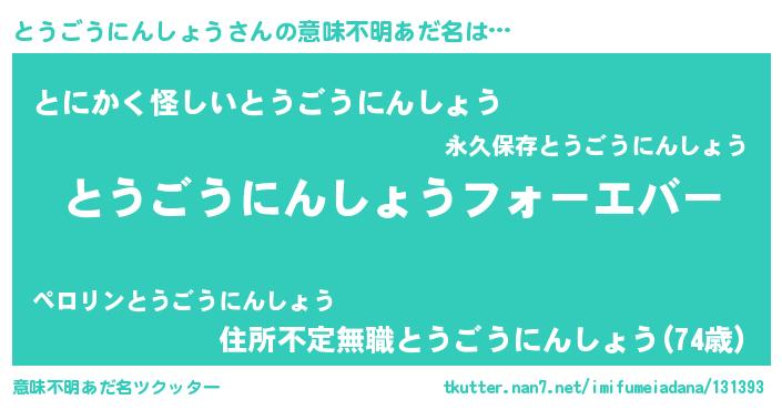 | ポケモン風あだ名 | 『トウゴンZ』『トウゴダネ』 |