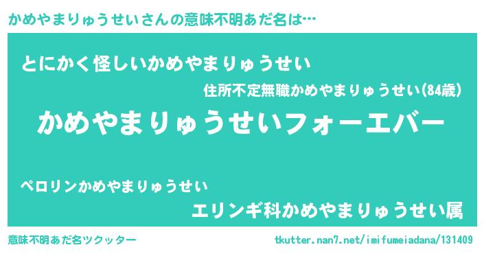 | 欧米人風あだ名 | 『かめやまりゅうせい・ステッグマイヤー』 |