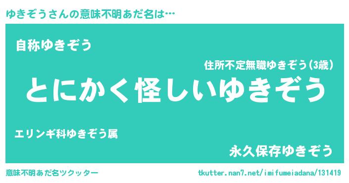 | 男性向けラノベタイトル風あだ名 | 『うちのゆきぞうが世界を掌握している!』 |