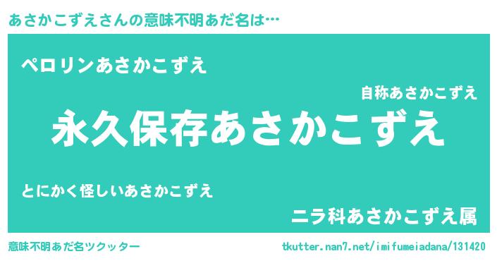 | 男性向けラノベタイトル風あだ名 | 『あさかこずえという概念が存在しない退屈な世界 』 |
