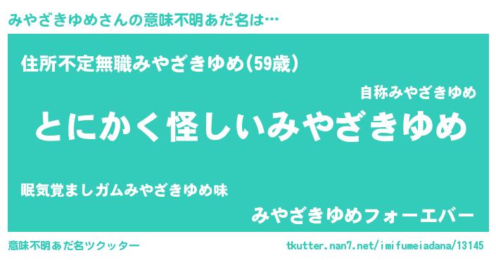 | ポケモン風あだ名 | 『ヒミヤザキユメ』『ミーヤイ』 |