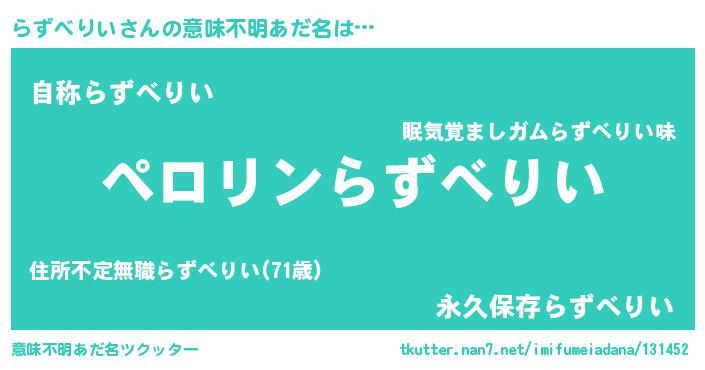 | ヘコむあだ名 | 『らずにー』『らずべりい(小並感)』 |