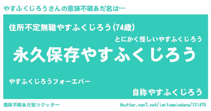 | ヘコむあだ名 | 『やすふくじろう(小並感)』『やすお』 |