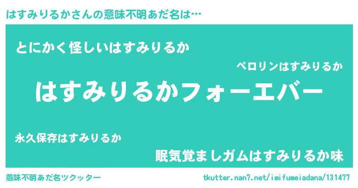 | ヒーロー風カッコイイあだ名 | 『ウルトラはすみりるかマン』 |