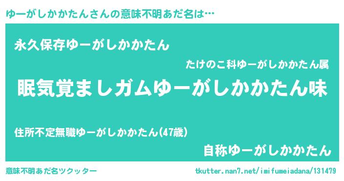 | ヘコむあだ名 | 『ゆーがしかかたん(笑)』『ゆーっ子』 |
