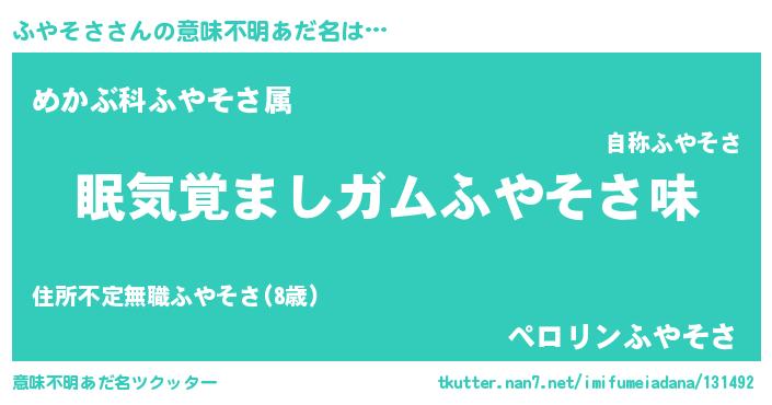 | ヘコむあだ名 | 『ふやにー』『牛乳』『ふやぷりん』 |