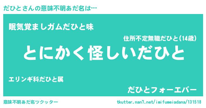 | ヘコむあだ名 | 『だひ太郎』『豆乳』『だひもー』 |