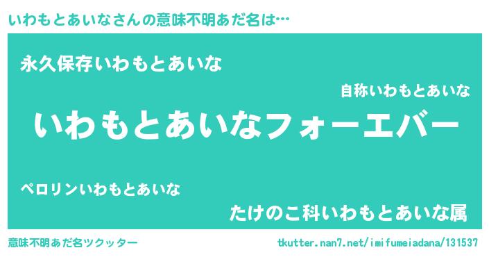 | 可愛いあだ名 | 『いわちー』『いわもとあいなママ』 |
