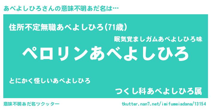 | 男性向けラノベタイトル風あだ名 | 『あべよしひろの憂鬱』 |
