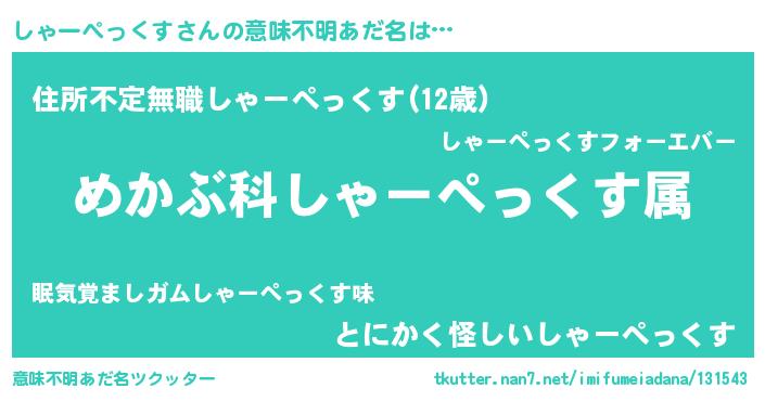 | 欧米人風あだ名 | 『トリンドルしゃーぺっくす』 |