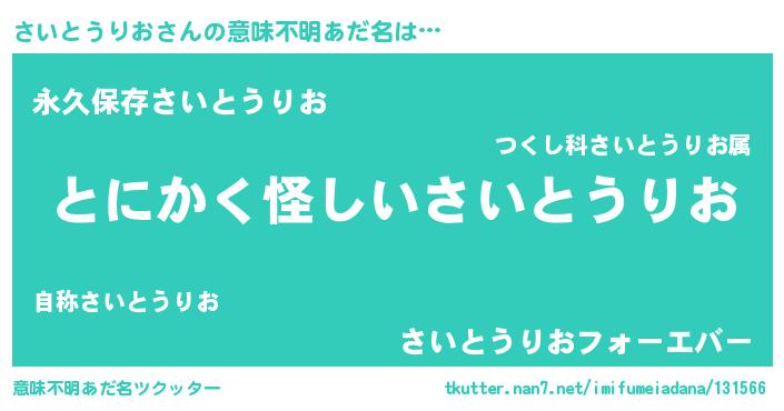 | 男性向けラノベタイトル風あだ名 | 『さいとうりおの嫁は女の子じゃないと思った?』 |